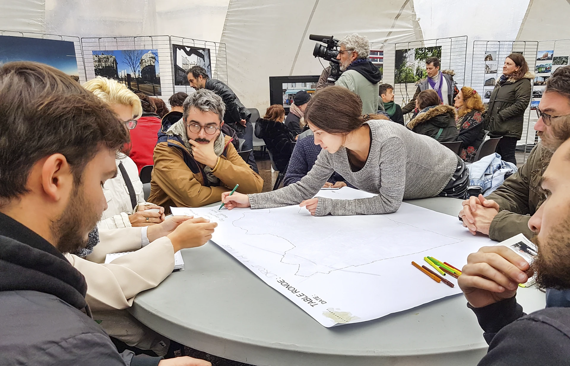 Avec l’association APPUII (Alternative pour des Projets Urbains Ici et à l’International), hébergée à la MSH Paris-Nord et dirigée par Agnès Deboulet (Sociologue Paris 8 et coordonnatrice du thème de recherche l’urbain et citoyen dans la mondialisation à la MSHPN), ils ont organisé ensemble, le 10 novembre 2018, une journée de débat autour des enjeux démocratiques des villes en transformations. Lors de cette journée d’action dans l’espace public art, urbanisme, recherche et politique étaient réunis dans une volonté d’échange et de débat pour que l’accès à la ville de demain soit plus démocratique.